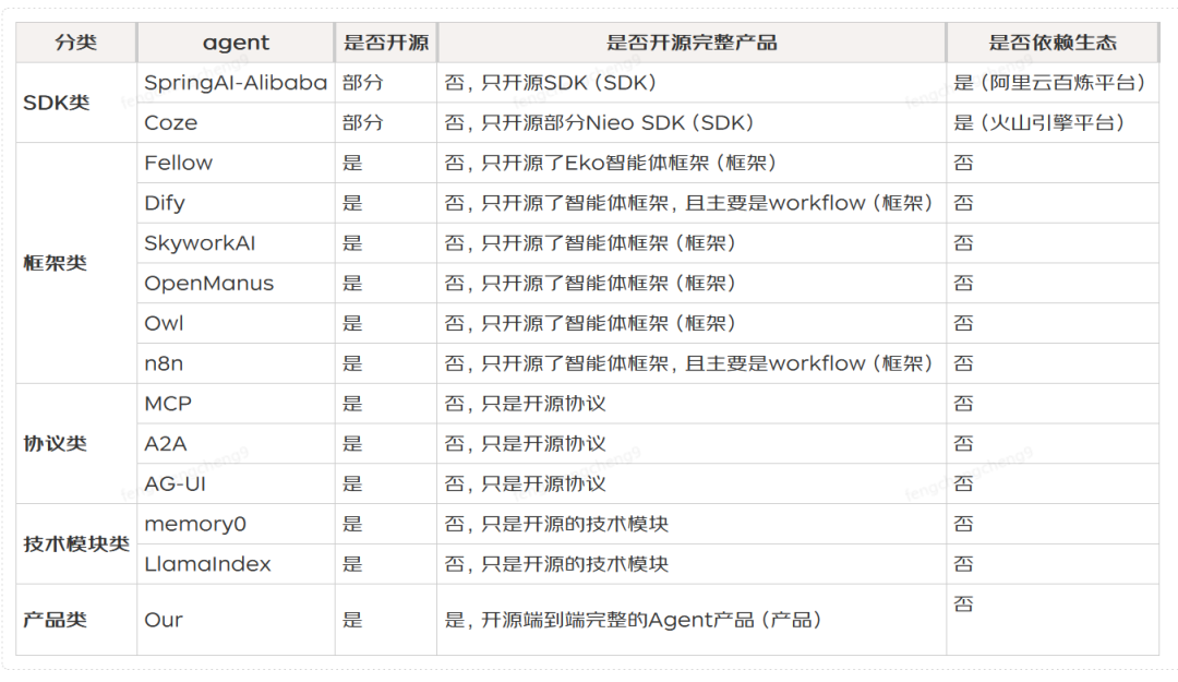 此外,我们的开源多智能体产品JoyAgent-JDGenie相对比较轻量,不像阿里的SpringAI-Alibaba需要依赖阿里云百炼平台相关功能(基于百炼平台调用LLM),Coze依赖火山引擎平台。