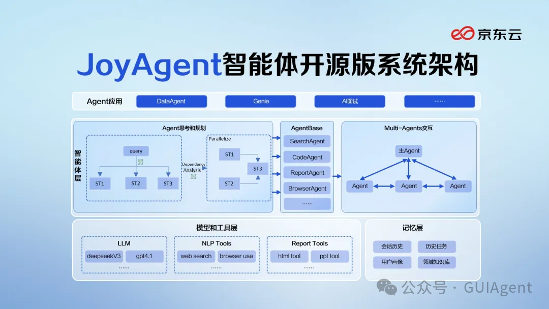 •更轻量化:此次开源的JoyAgent智能体,和平台耦合度低,无需依赖MaaS平台或云平台能力,用户可本地独立部署,使用更灵活。