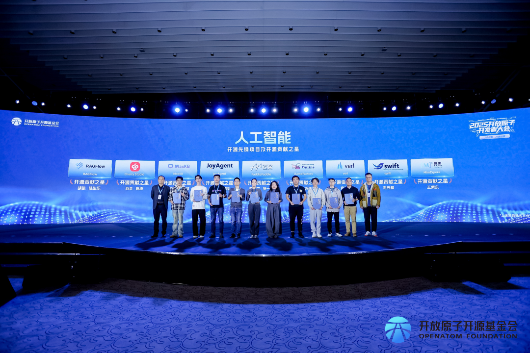 在本次大会上,京东JoyAgent项目凭借其在人工智能开源领域的创新贡献,荣获开放原子基金会“《人工智能》开源先锋项目”奖项,李杨和冯程程荣获开源项目之星。