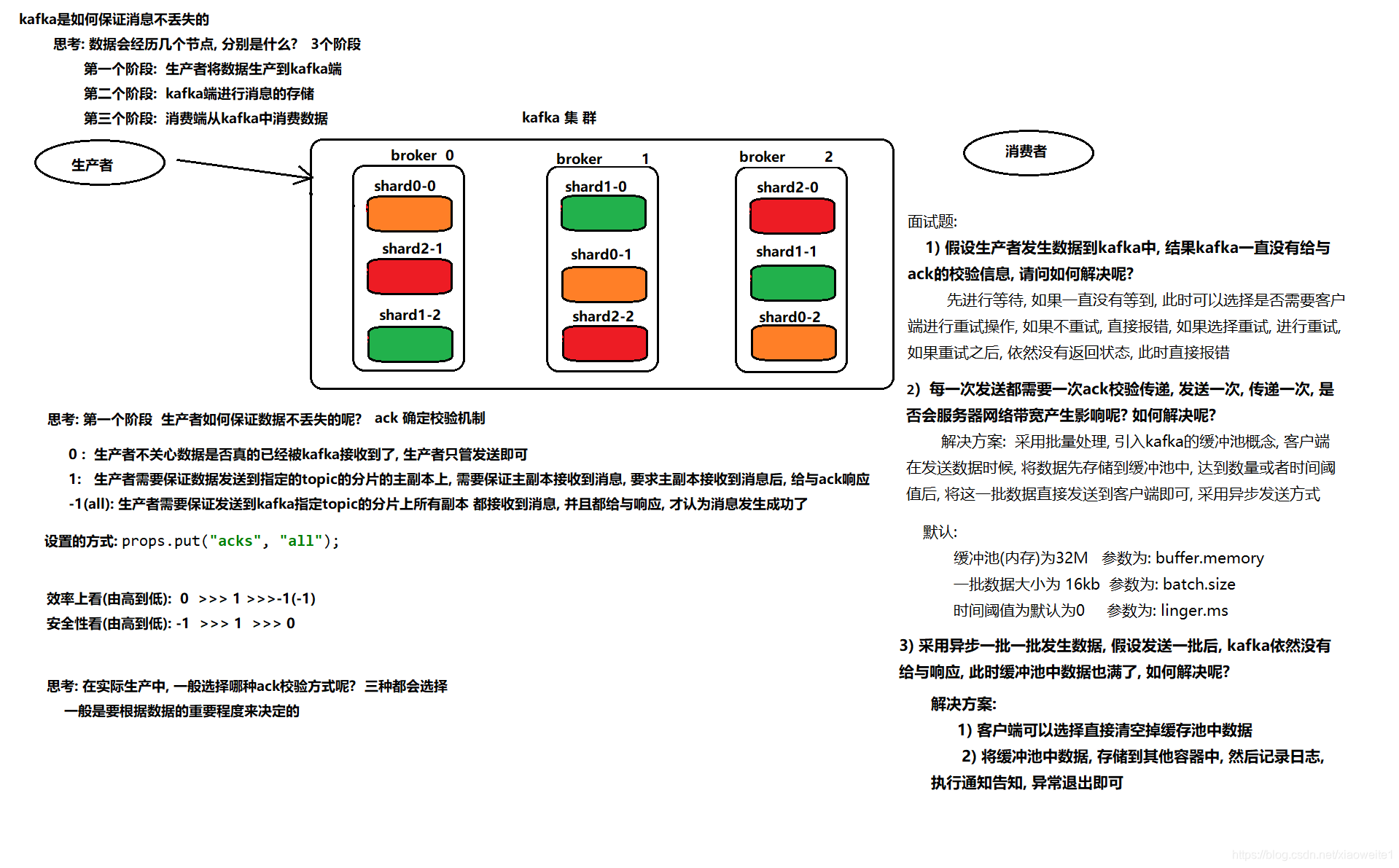 保证kafka数据不丢失,即保证生产者、消费者、broker三个部分数据不丢失。