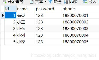 INSERT INTO `user` VALUES (2, '小王', '123', '18800070002', '2020-07-26 16:16:58');