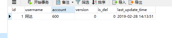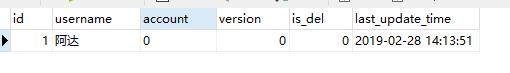 然后我们手动在数据库添加一条数据,此时阿达这个用户余额为0;