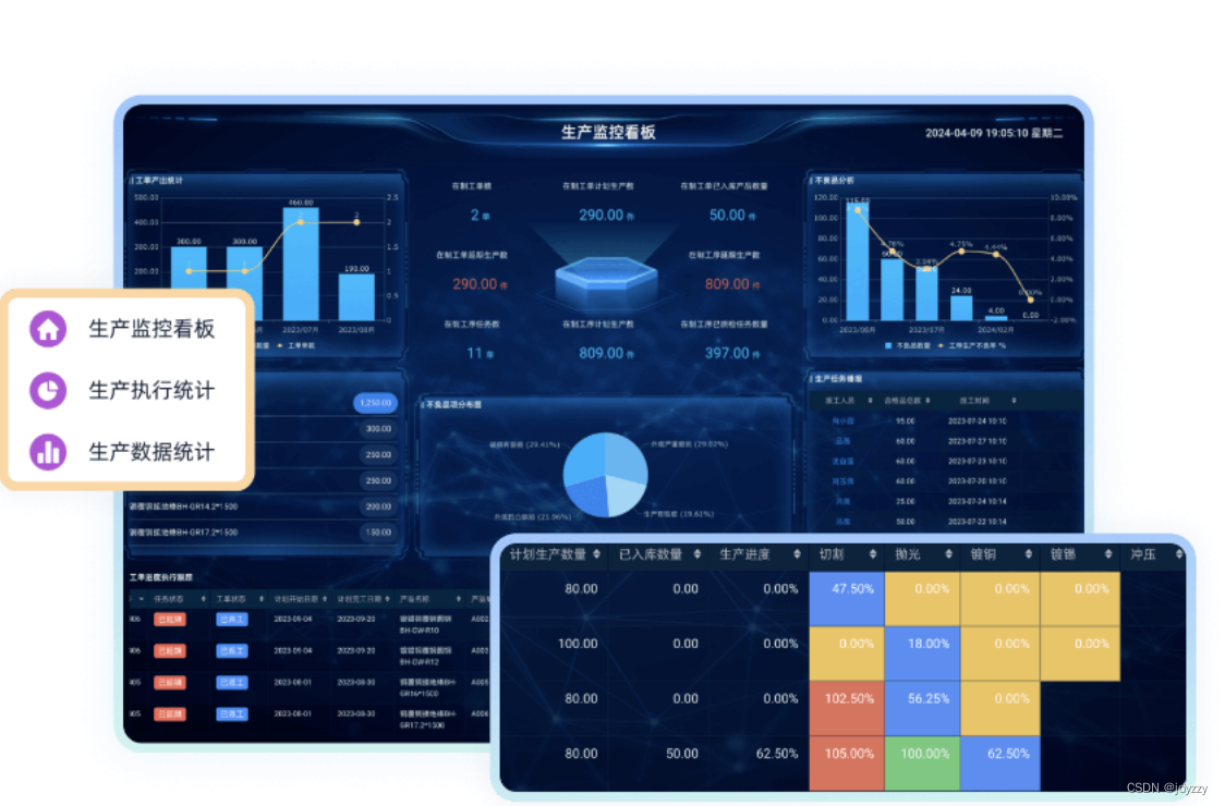 1.实时数据收集和监控:系统通过一个直观易懂的仪表盘界面,集中展示关键业务节点的实时数据。这使得生产管理人员能够迅速了解工厂的整体运行状态,包括生产进度、设备效率、物料消耗等关键指标。通过实时监控,管理人员可以及时发现潜在问题并采取相应的措施,确保生产过程的顺利进行。