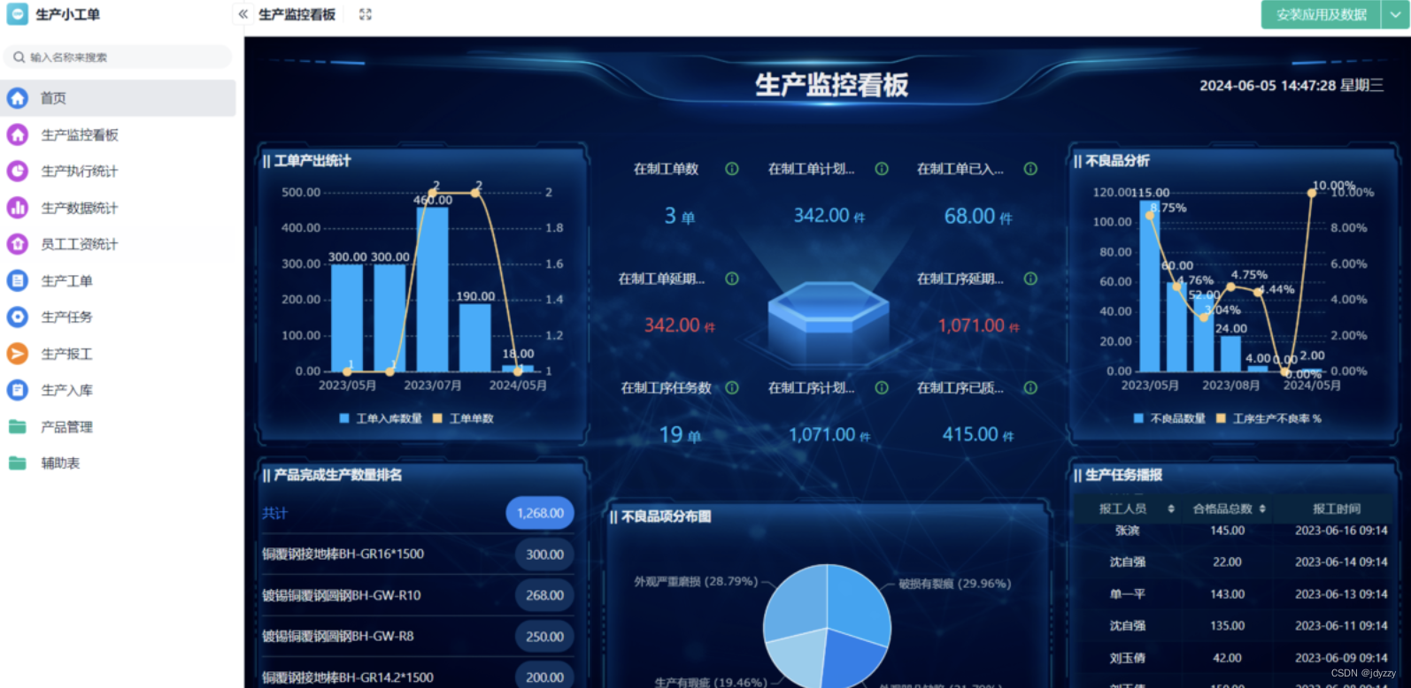 在简道云系统当中,可以以自己的需求,通过创建表单、流程表、仪表单等工具建立一个生产报工系统。如何通过自己的双手从“零’到”一“建立一个完整的生产报工系统,链接就放在这里了,可以动手试试:https://www.jiandaoyun.com