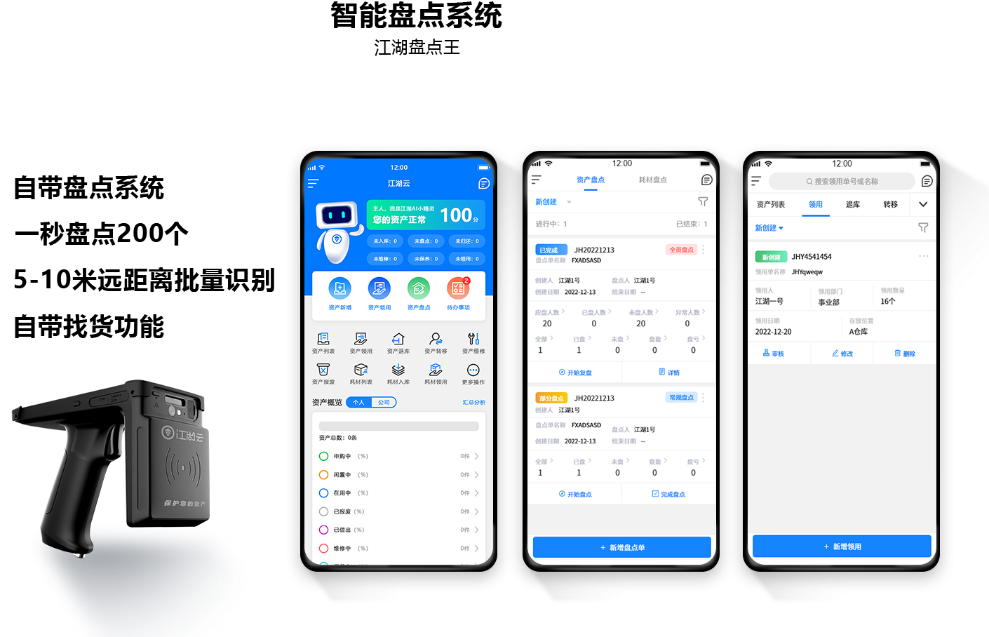 - 1秒批量盘点200个资产,支持远距离扫描。