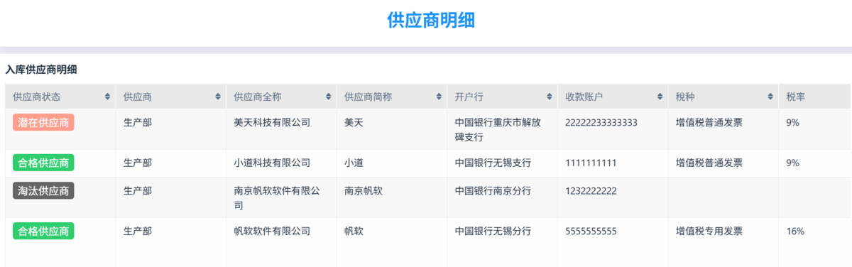 - 交货及时率 → 系统自动对比订单交期与实际收货时间
