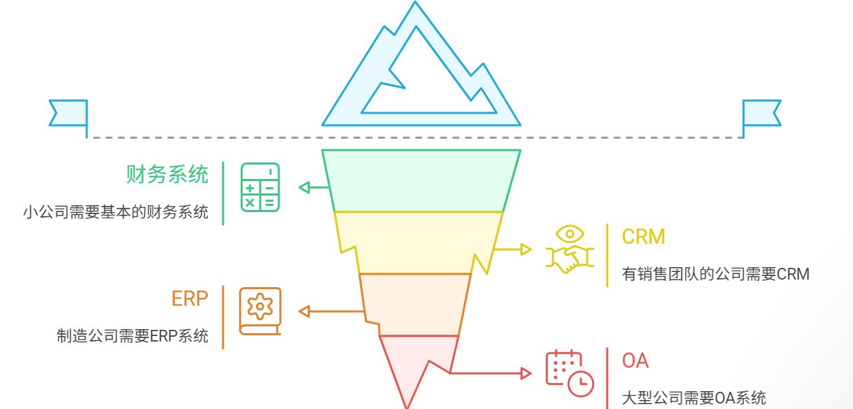 如果没有CRM,公司不知道客户在哪; 如果没有ERP,公司内部一团乱; 如果没有OA,公司流程卡死; 如果没有财务,公司根本不知道赚不赚钱。