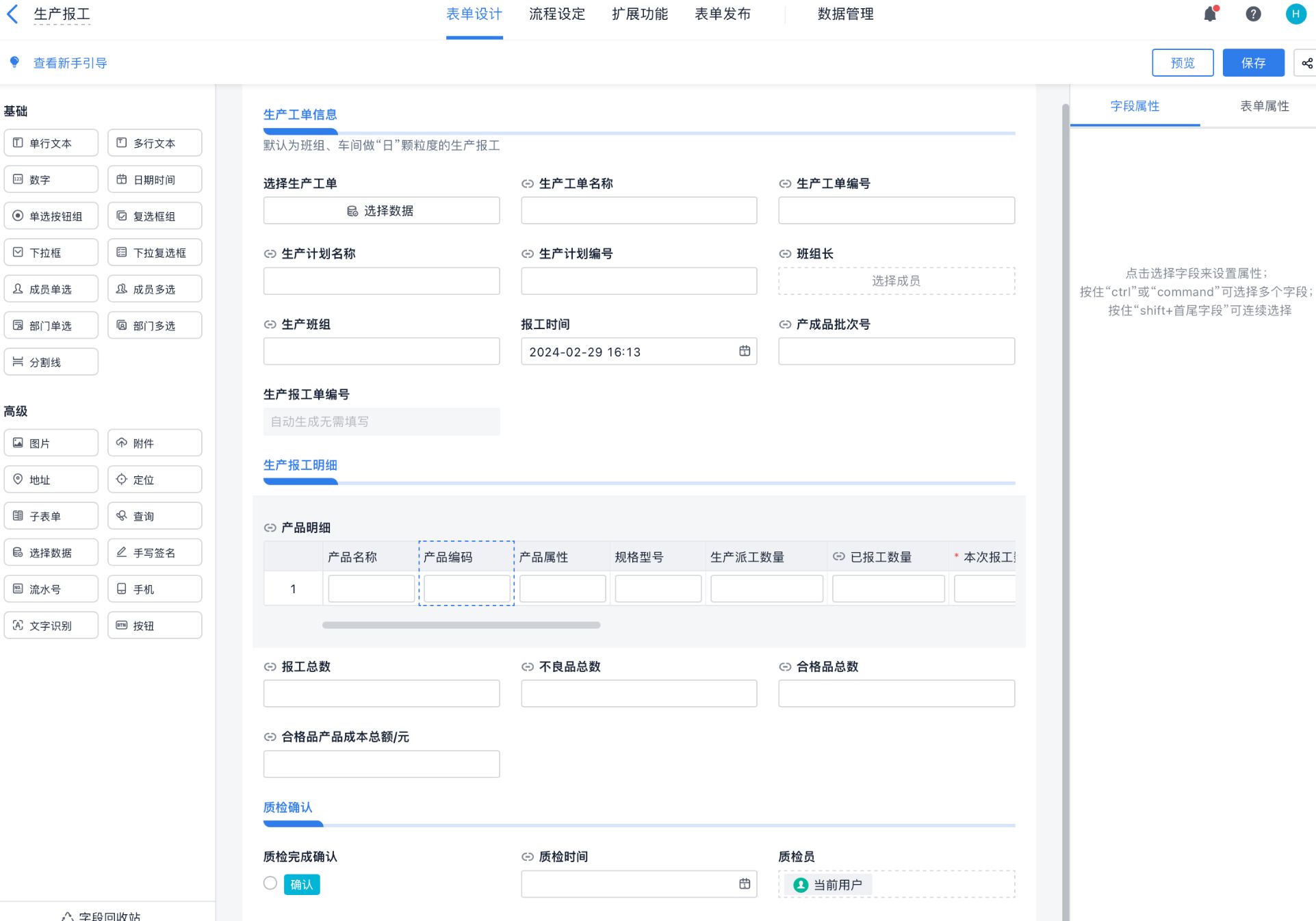 - 生产日报表