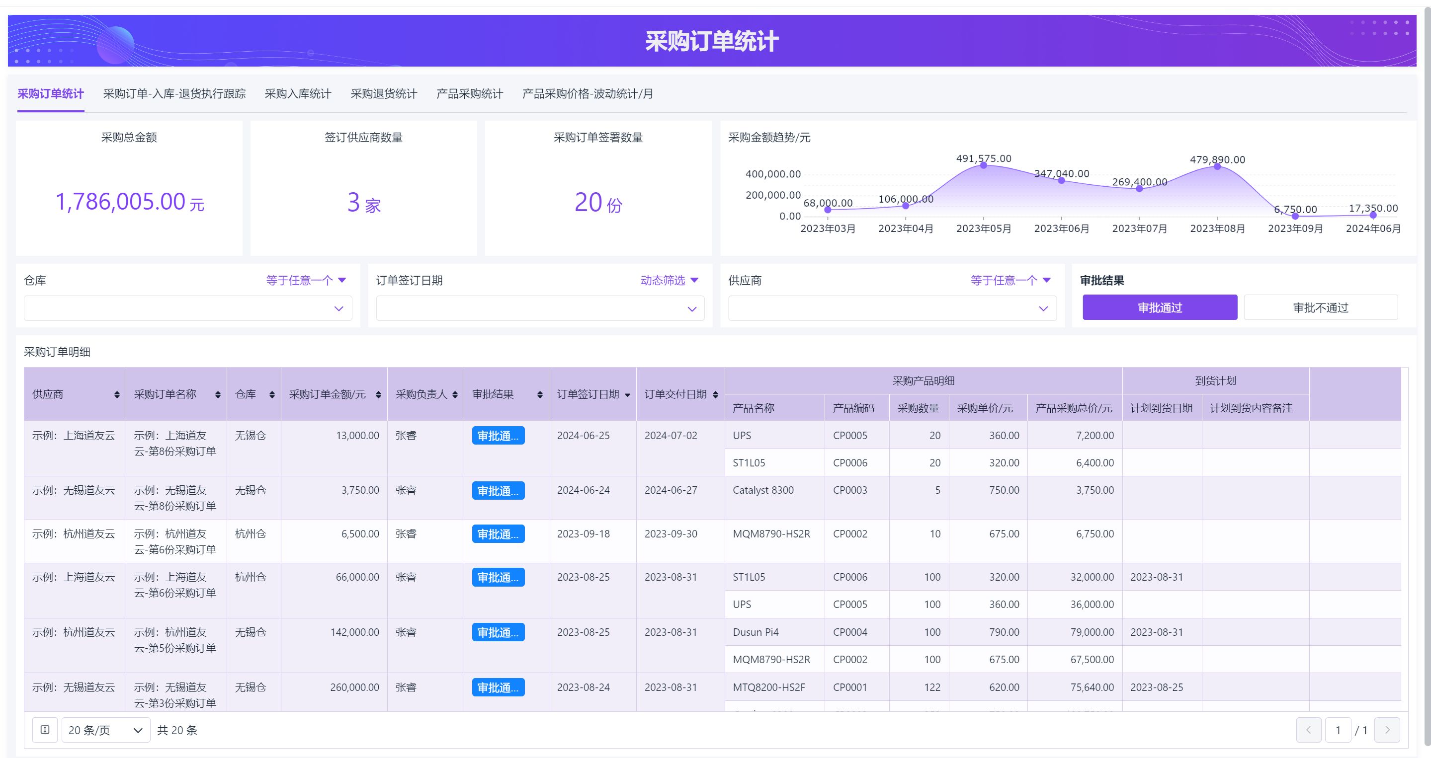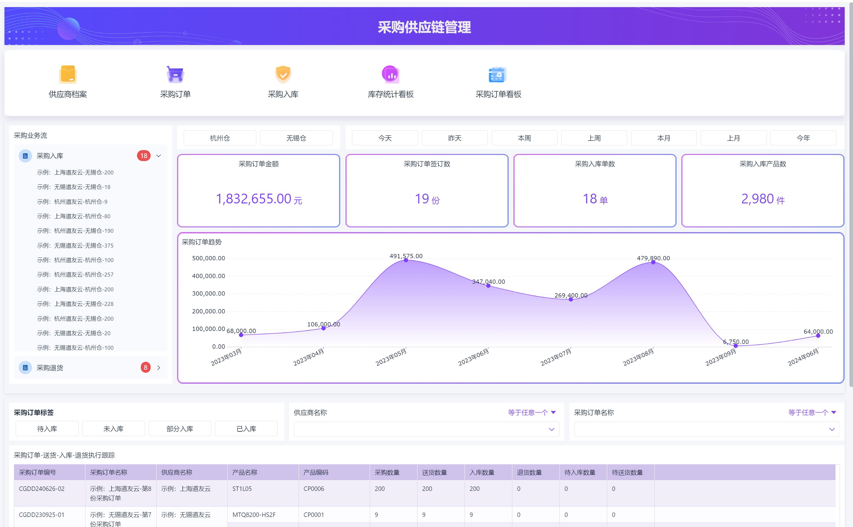 - 供应商延迟交货?系统发出警报,让采购及时加急或调整供应商。