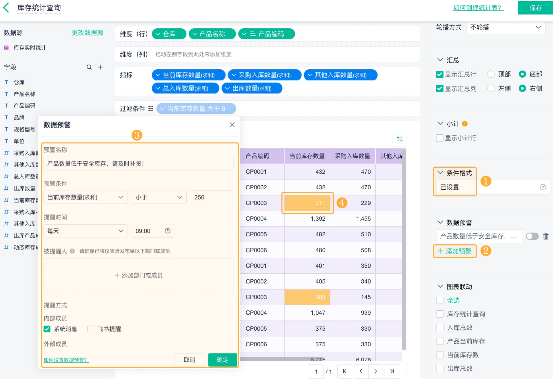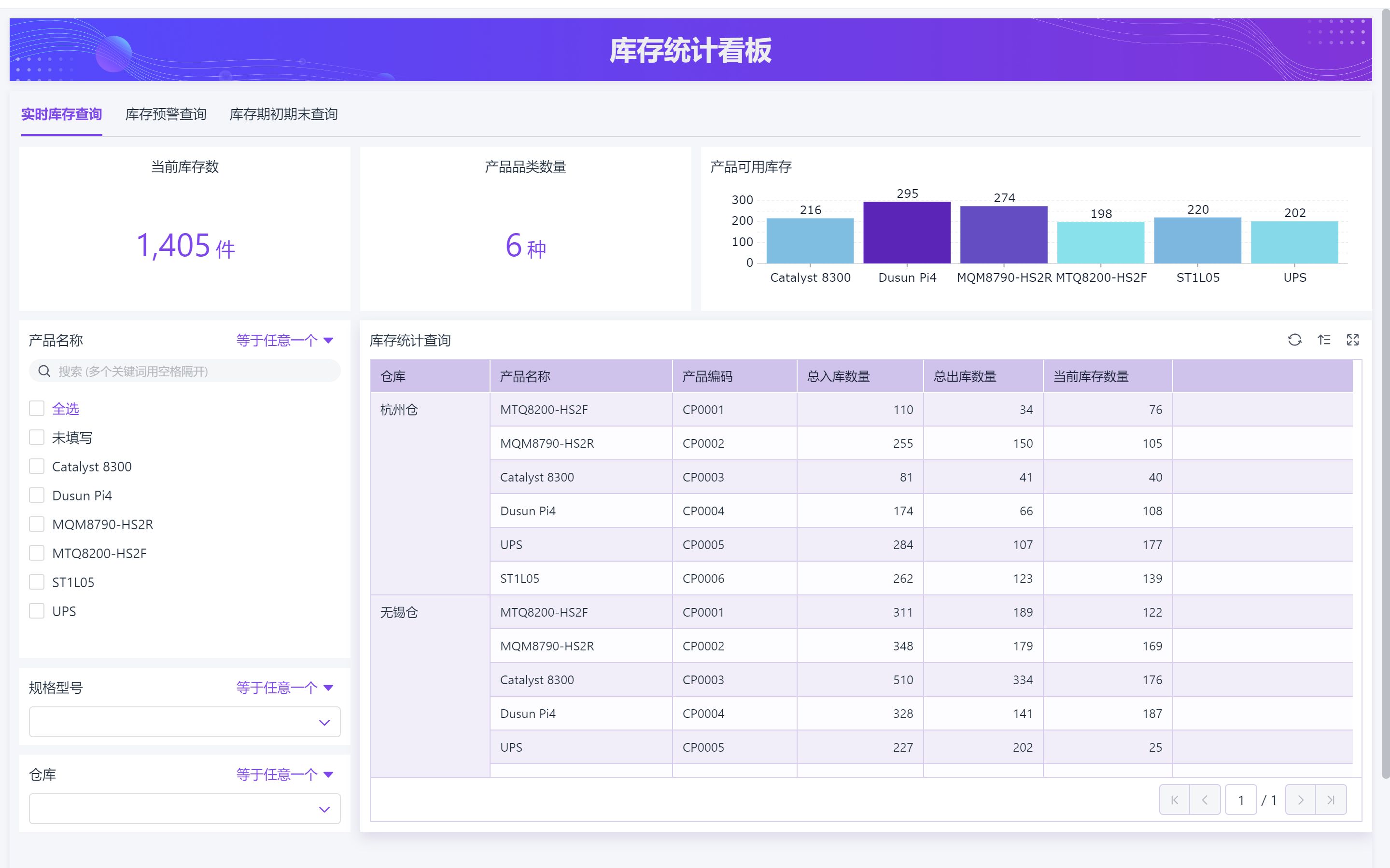 - 建立库存指标:周转率、呆滞率等数据动态显示;