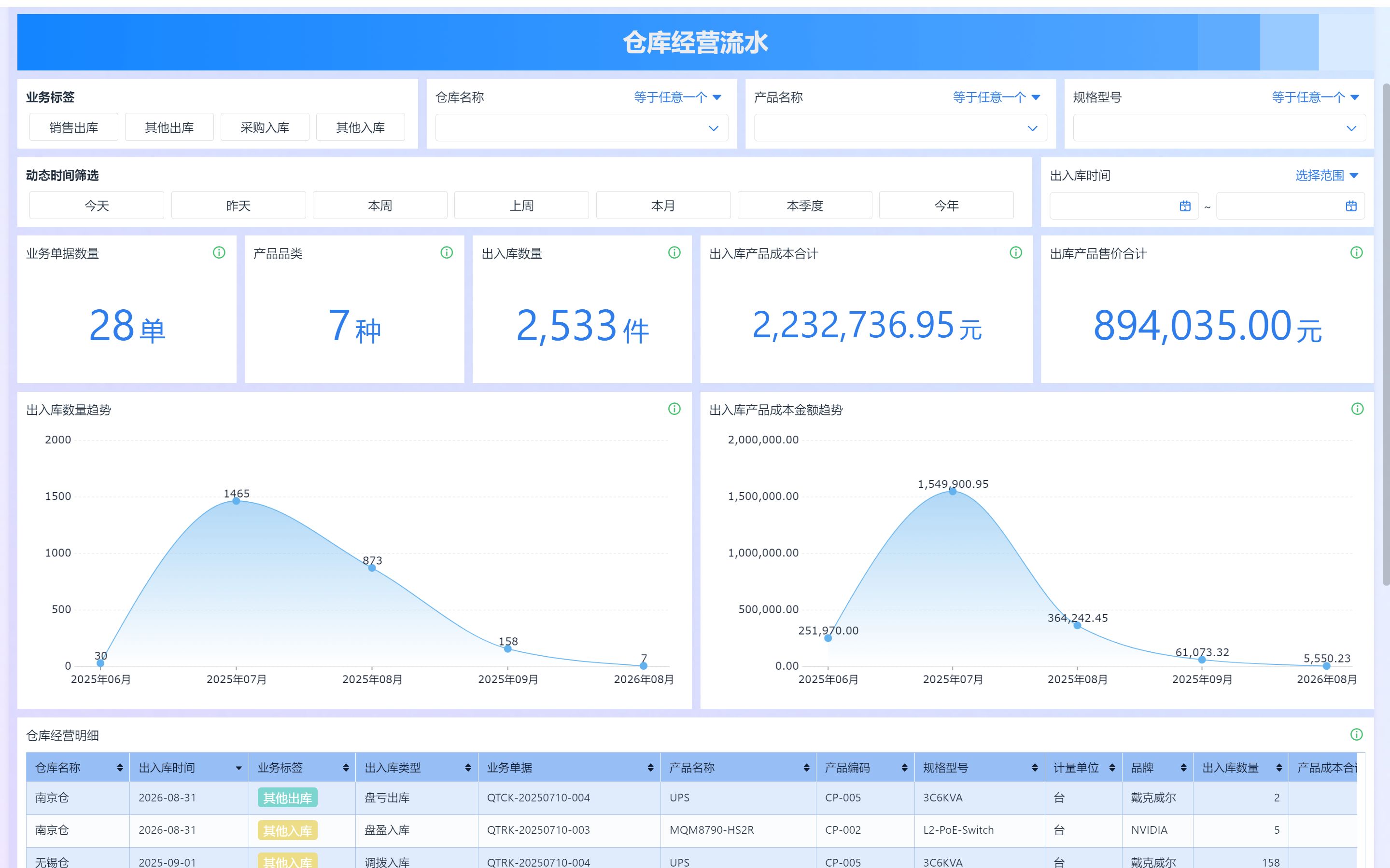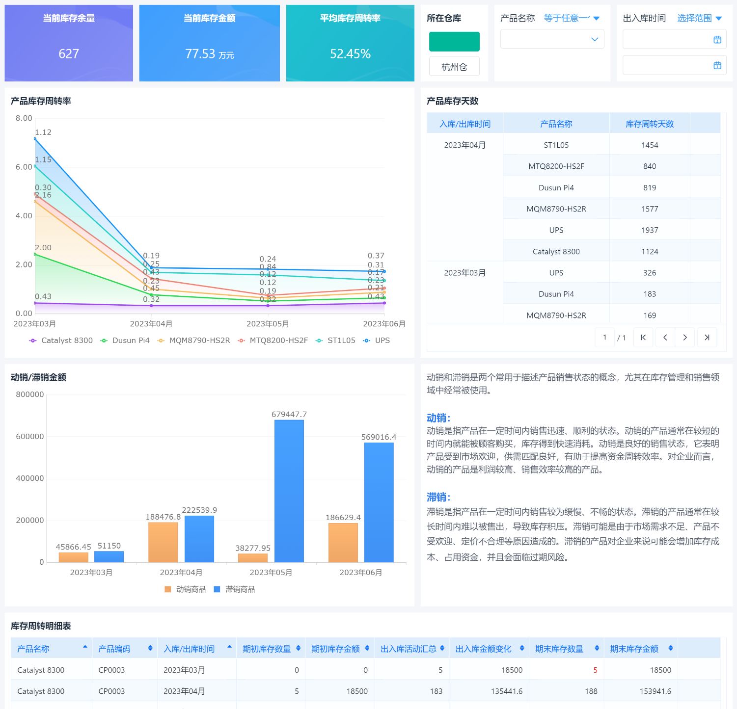 库存流转表会把入库、出库、调拨和销售量统计出来,计算库存周转率和滞销率,并用趋势图展示变化。