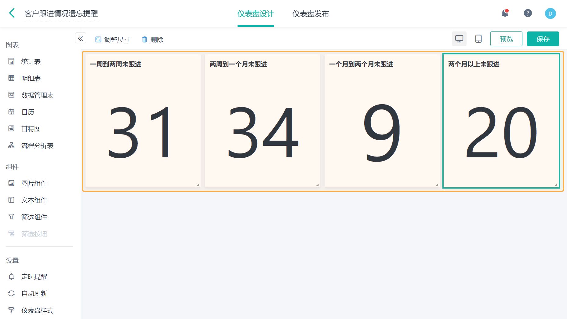 - 主管打开仪表盘就能看到:哪条线索已跟进哪条线索滞留哪条线索可能流失