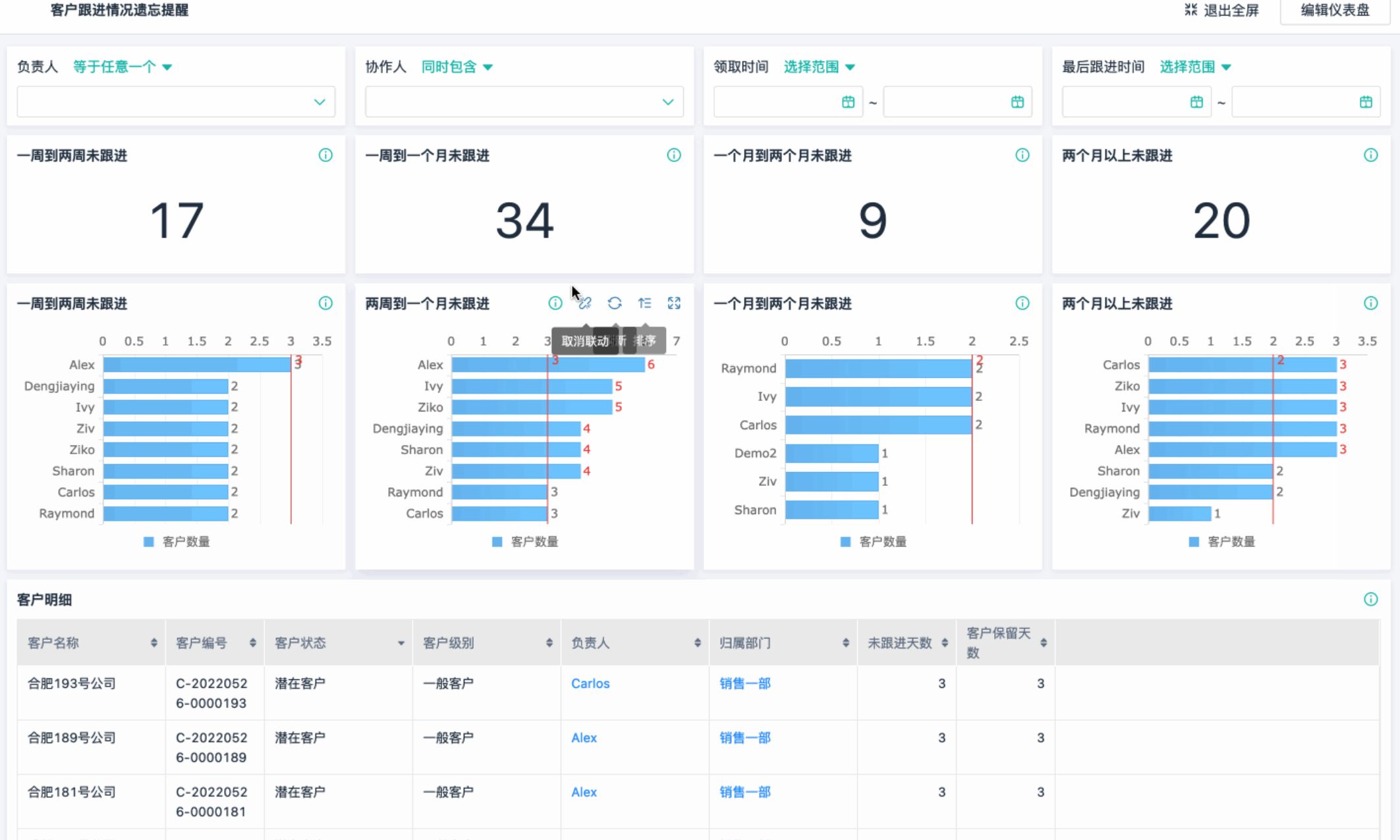 - 哪些商机停滞、