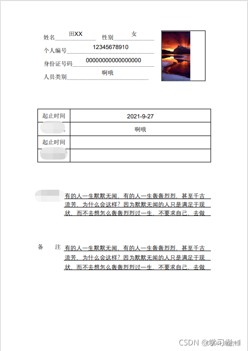 我生成的pdf模板如下图所示。