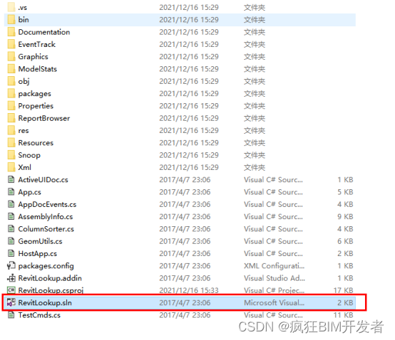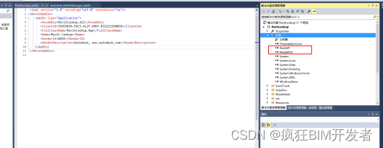 (1)RevitLookup.addin:RevitLookup的注册文件,在Revit启动时触发,,这个类似于文本文件,可以通过Visual Studio 2015打开;