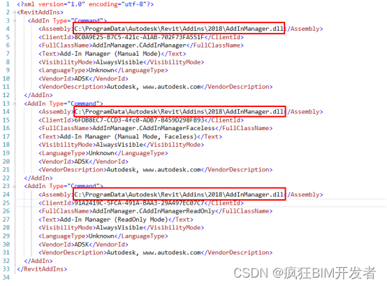 (2)将Autodesk.AddInManager.addin中<Assembly>....<Assembly>的路径改成AddInManager.dll所在的路径,其他不需要修改。