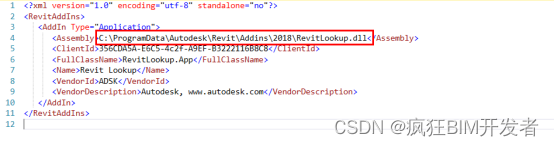 (2)将RevitLookup.addin中<Assembly>....<Assembly>的路径改成RevitLookup.dll所在的路径,其他不需要修改。