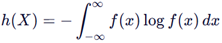 连续随机变量 *微分熵*h(X) = E[I(X)] = -∫ f(x) log f(x) dx;其中f(x)为概率密度函数;