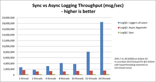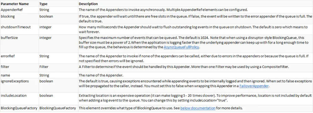 By default, AsyncAppender uses java.util.concurrent.ArrayBlockingQueue which does not require any external libraries. Note that multi-threaded applications should exercise care when using this appender as such: the blocking queue is susceptible to lock contention and our tests showed performance may become worse when more threads are logging concurrently. Consider using lock-free Async Loggers for optimal performance.
