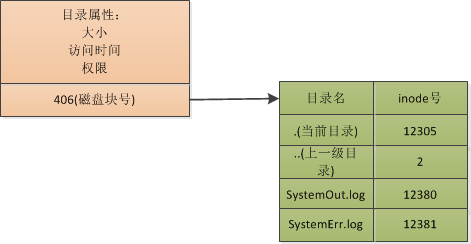 ”这是自然,和文件一样,每个目录也是一个inode, 其中有目录的属性,还有存放这个目录内容的磁盘块号,在磁盘块中才真正的存放着目录下的内容“