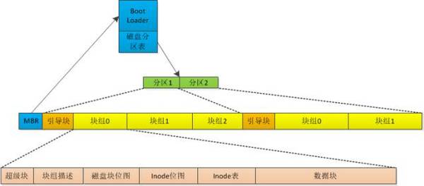每个分区除了必须的引导块之外,又被分成多个块组。