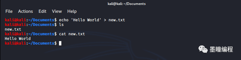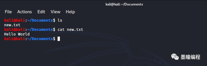 要查看一个文件的内容,请使用cat 关键字,然后跟上文件的名称,以显示其内容。