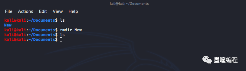 要相对删除一个目录,只需在目录名称前运行rmdir 命令,如下图所示。