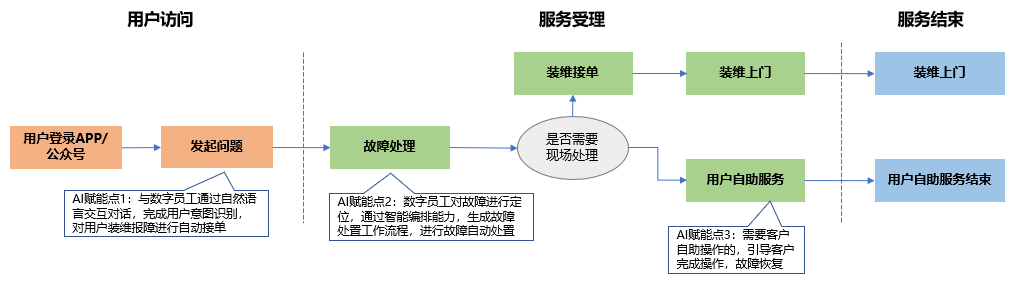 通过对业务流程的分解,精准发挥AI的效用,比如一个故障处理的案例。