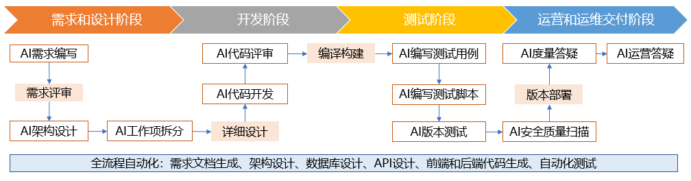 再以一个软件代码研发流程为例进行分解,利用AI进行了提效。