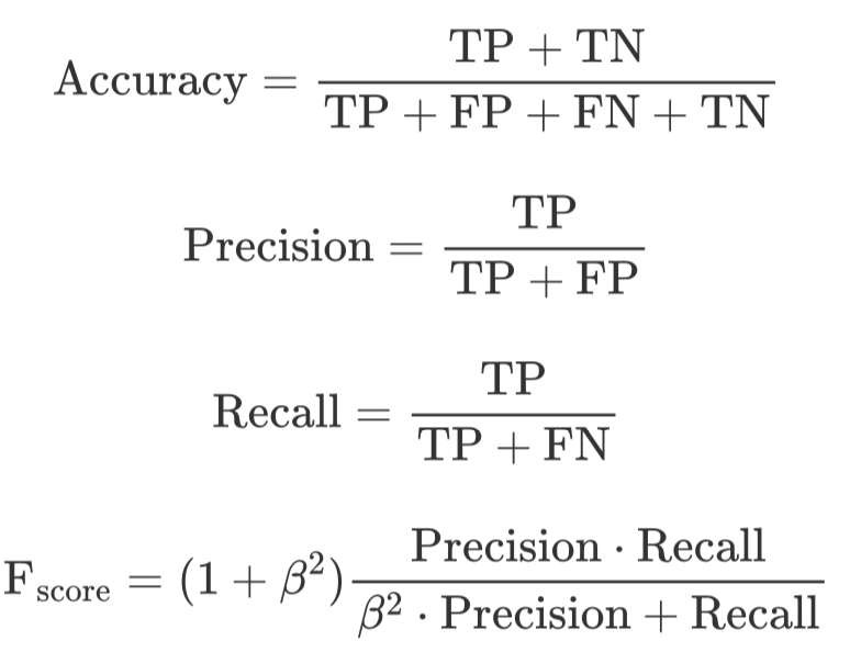 定义完上述4种分类情况后就能得出各种场景下的计算指标公式