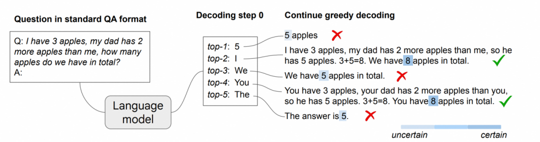来自:Chain-of-Thought Reasoning without Prompting
