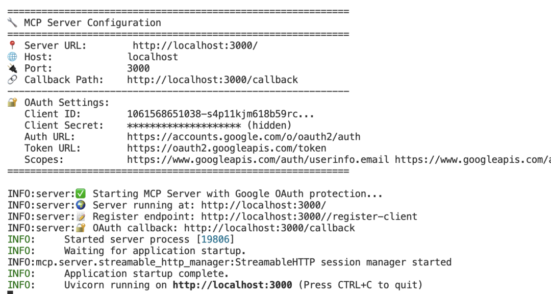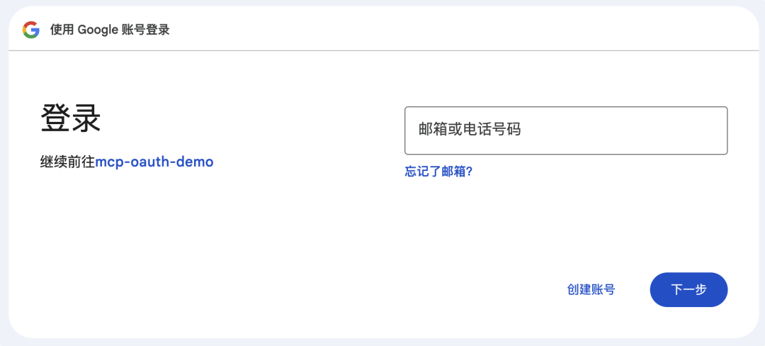 现在我们构建一个完整的示例:使用Python语言和官方MCP Python****SDK,在本地运行一个MCP Server,并将其配置为使用Google的OAuth2服务进行用户认证授权。在实际生产中,你可以把OAuth Server替换成企业自己的统一授权服务。