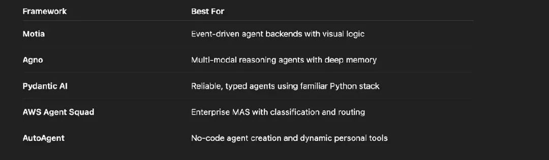 - • Agno:野心大的项目,需多模态和复杂推理的场景。