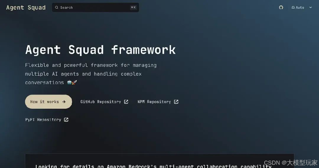 - • AWS Agent Squad:企业级应用,需高可靠性和可扩展性。