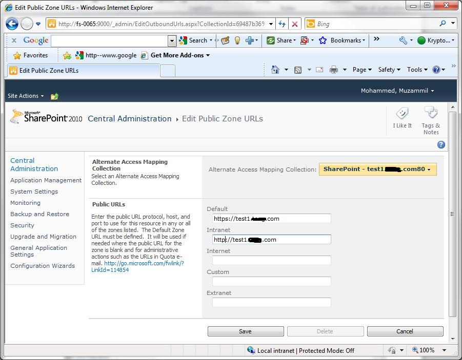 Go to CA\ AAM\ hit on Edit Public URLs and enter the following which is