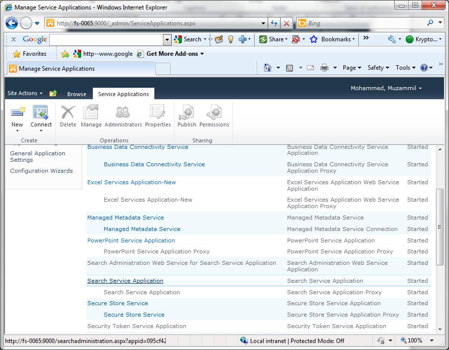Go to CA\Application management \ Manage Service applications\