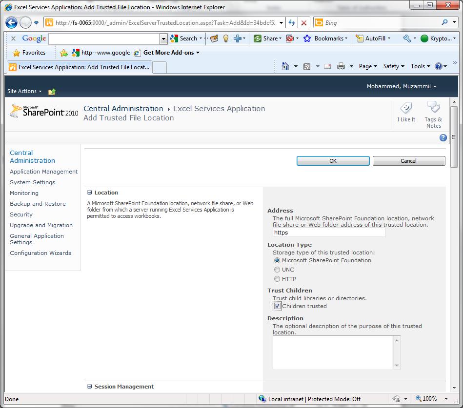 Excel services : lets fix this up , I require an https trusted location to store files.