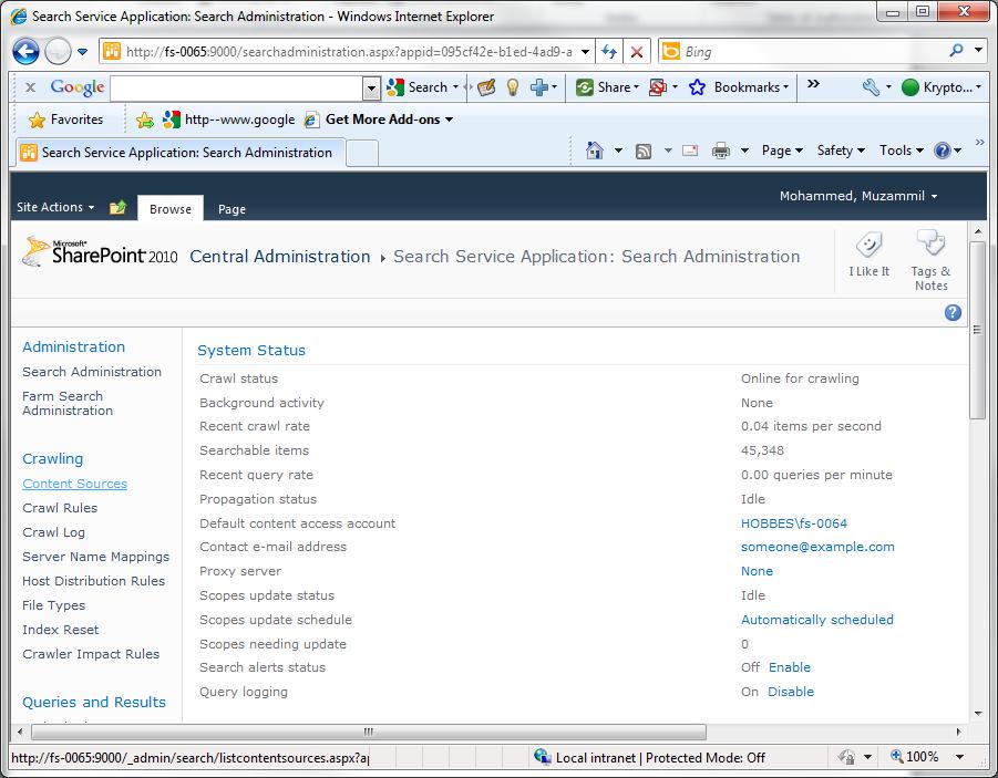 Click on the instance of “Search Service Appilcation” that is indexing your website.