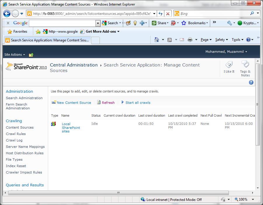 Click on the content source that has your webapplication, in my case it is “Local SahrePoint sites”.