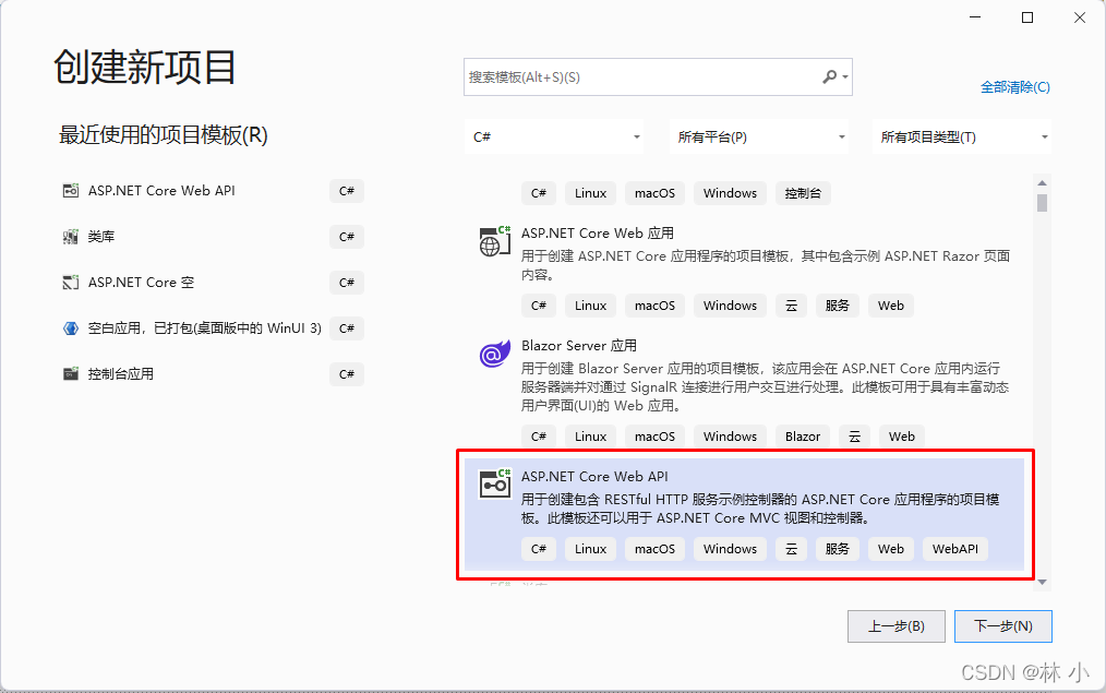 新建一个.Net 6 项目,选择Asp.Net Core Web Api 模板