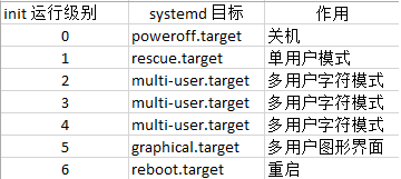 常用的运行级别是 3 (多用户字符模式)和 5(多用户图形界面模式),它们分别对应的目标就是 multi-user.target 和 graphical.target。设置和切换不同的运行级别,CentOS 7 还是向前支持 init 命令,但是更建议我们使用 systemd 的管理工具 systemctl 来完成。