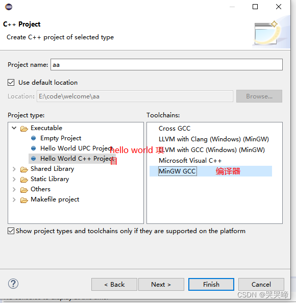 在windows下编译c++项目则需要安装MinGW,详细安装步骤参考下载并安装MinGW