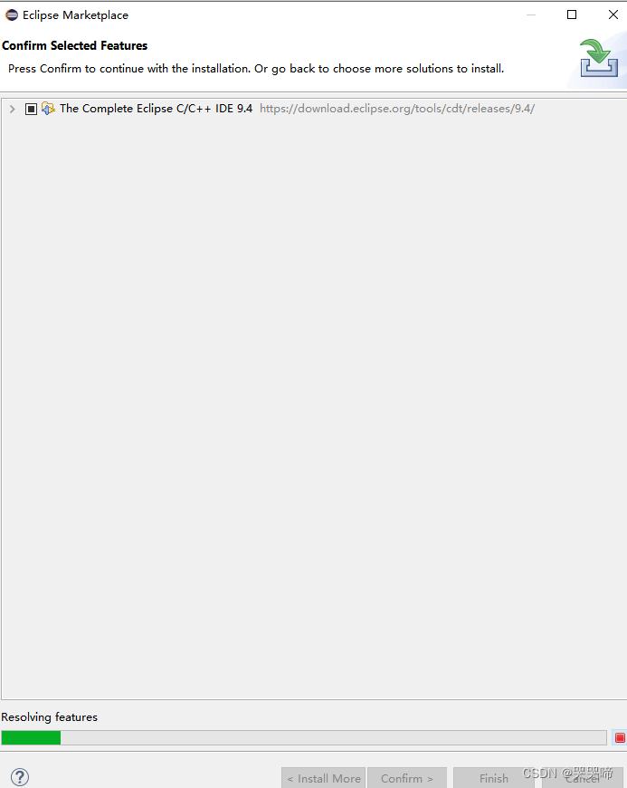 点击Finish后并为完成安装,下图进度条完成重启eclipse才行。