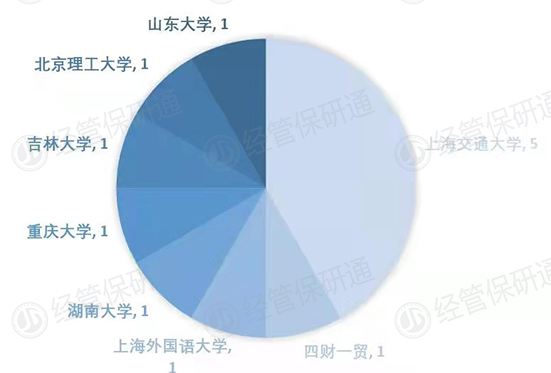 除上海交通大学本校录取5人外,其他录取的7人均来自不同的院校,对外校生源的录取较为分散。