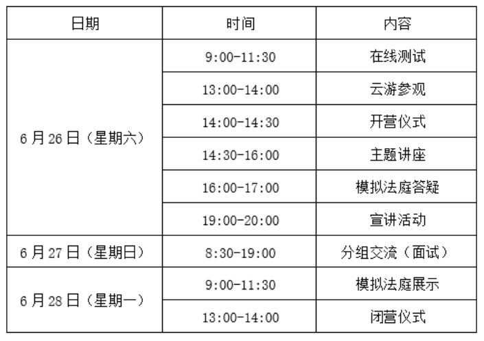 2020年与2021年受疫情影响,上交夏令营改为线上进行。取消了笔试部分,夏令营由面试与模拟法庭竞赛组成。面试部分分为中文专业面试和英文面试,更加侧重对学员综合能力的考察。