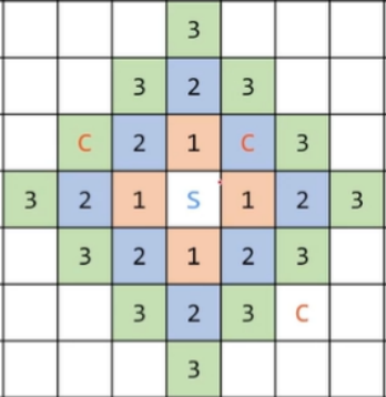//搜索队头元素下一步所有可去的相邻状态(位置)