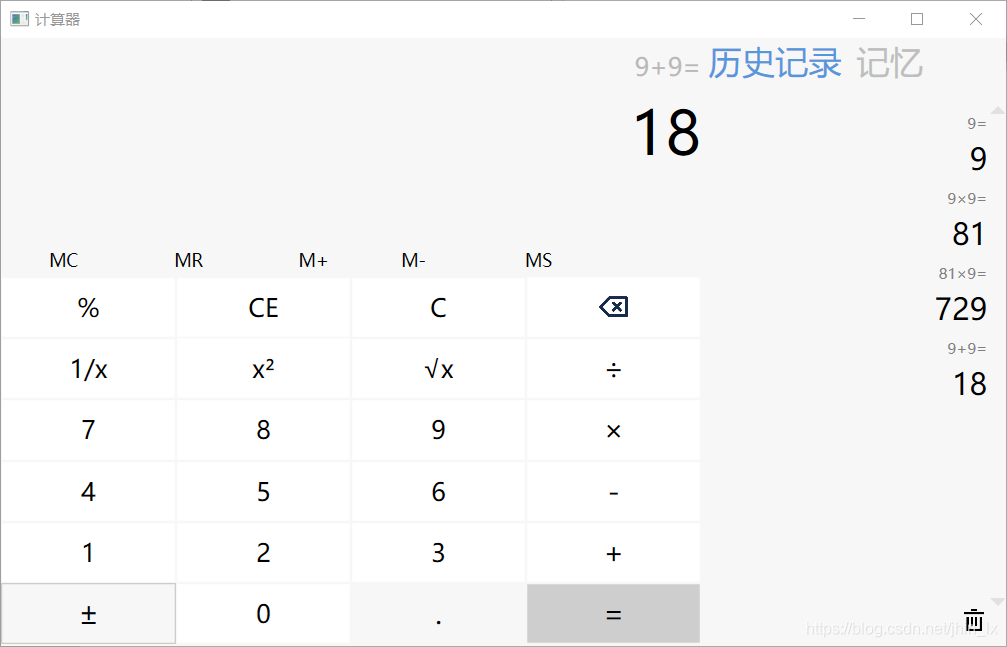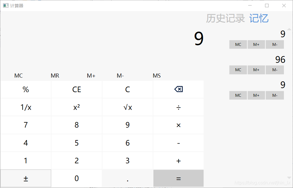 利用WPF技术,模仿Windows10系统自带的计算机逻辑和样式(针对标准模式),开发出一个类似的计算器。功能上在普通计算机运算逻辑基础上,加上了Windows10自带计算器简易版的记忆功能,可以对算式结果进行存储和二次运用。
