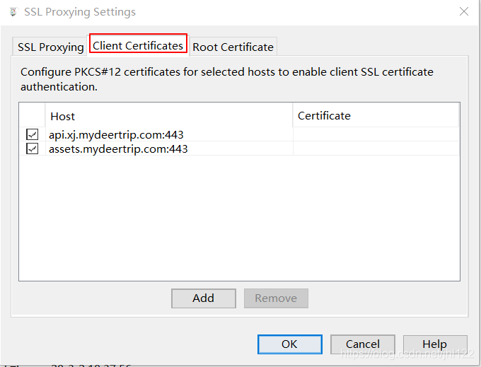 还是当前弹窗,选中Client Certificates,添加域名的证书,操作一样。