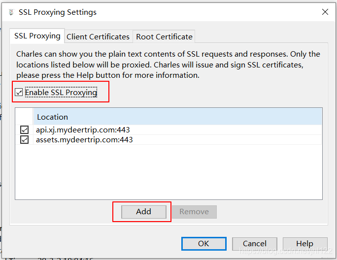勾选Enable SSL Proxying,点击Add添加需要抓包的host,添加默认端口号443。