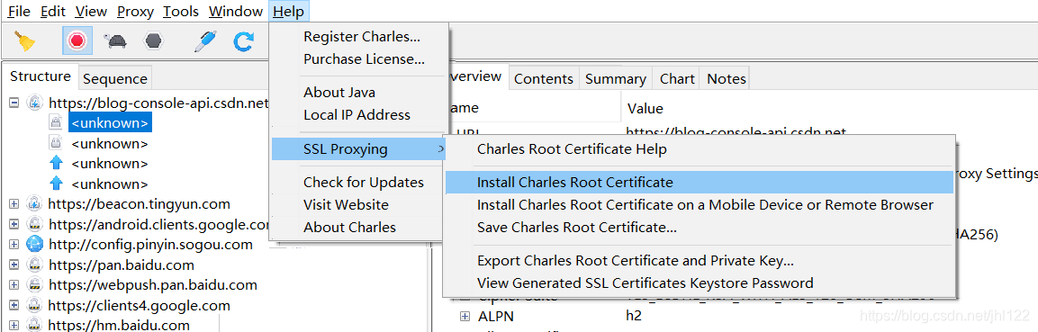 Help -> ssl proxy -> Install Charles Root Certificate on a Moblie Device or Remote Browser